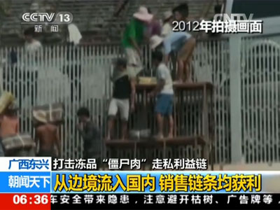 据海关人员介绍,这些冻肉流向国内的途径主要来自中越交界的广西和云南。